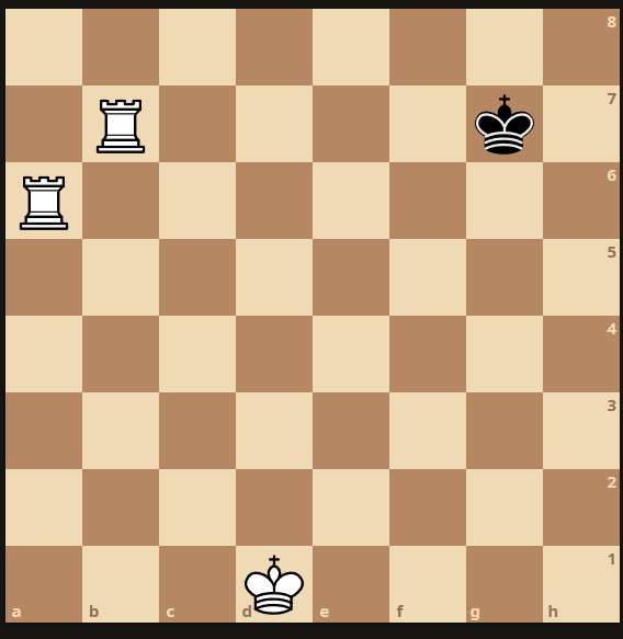 Ici, il y a pat si c'est au tour des noirs de jouer car ils ne peuvent pas. Mais il n'y a pas mat car le roi n'est pas en échec. Cette situation est un match nul = Les deux joueurs finissent à égalité !