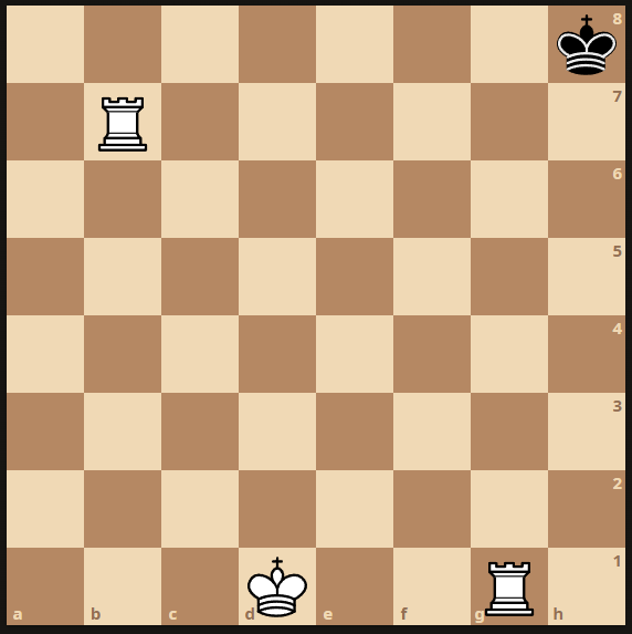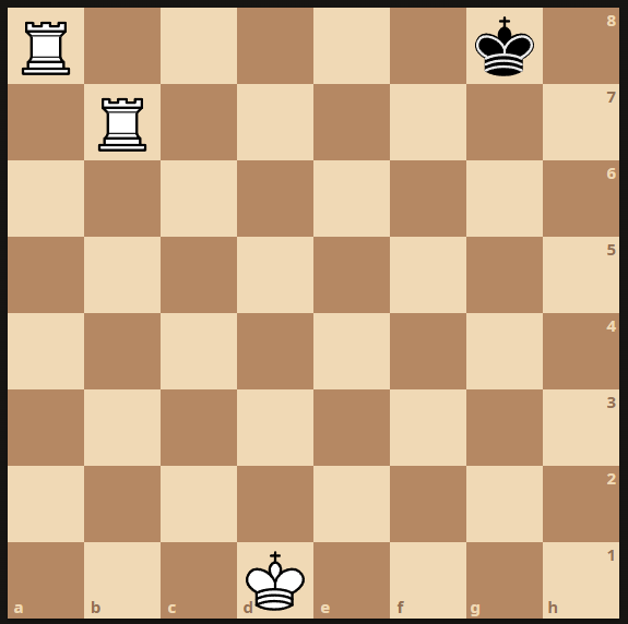 Ici, il y a pat si c'est au tour des noirs de jouer car ils ne peuvent pas. Mais il n'y a pas mat car le roi n'est pas en échec. Cette situation est un match nul = Les deux joueurs finissent à égalité !